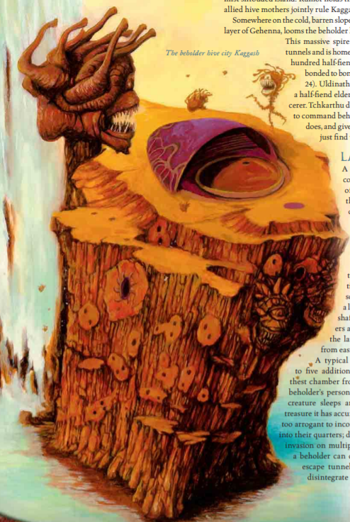 This tooth summons a Beholder if planted or grants its wielder the ability to cast the Eyebite spell from the tooth once a day. The name Kaggash refers to D&D 3.5e's Lords of Madness: The Book of Aberrations, where it appears as a massive hive-city of Beholders on an unknown world of the material plane. The city exists on a mist-shrouded volcanic island and is home to around 2000 Beholders, ruled by a council of ten Beholder Hive Mothers.